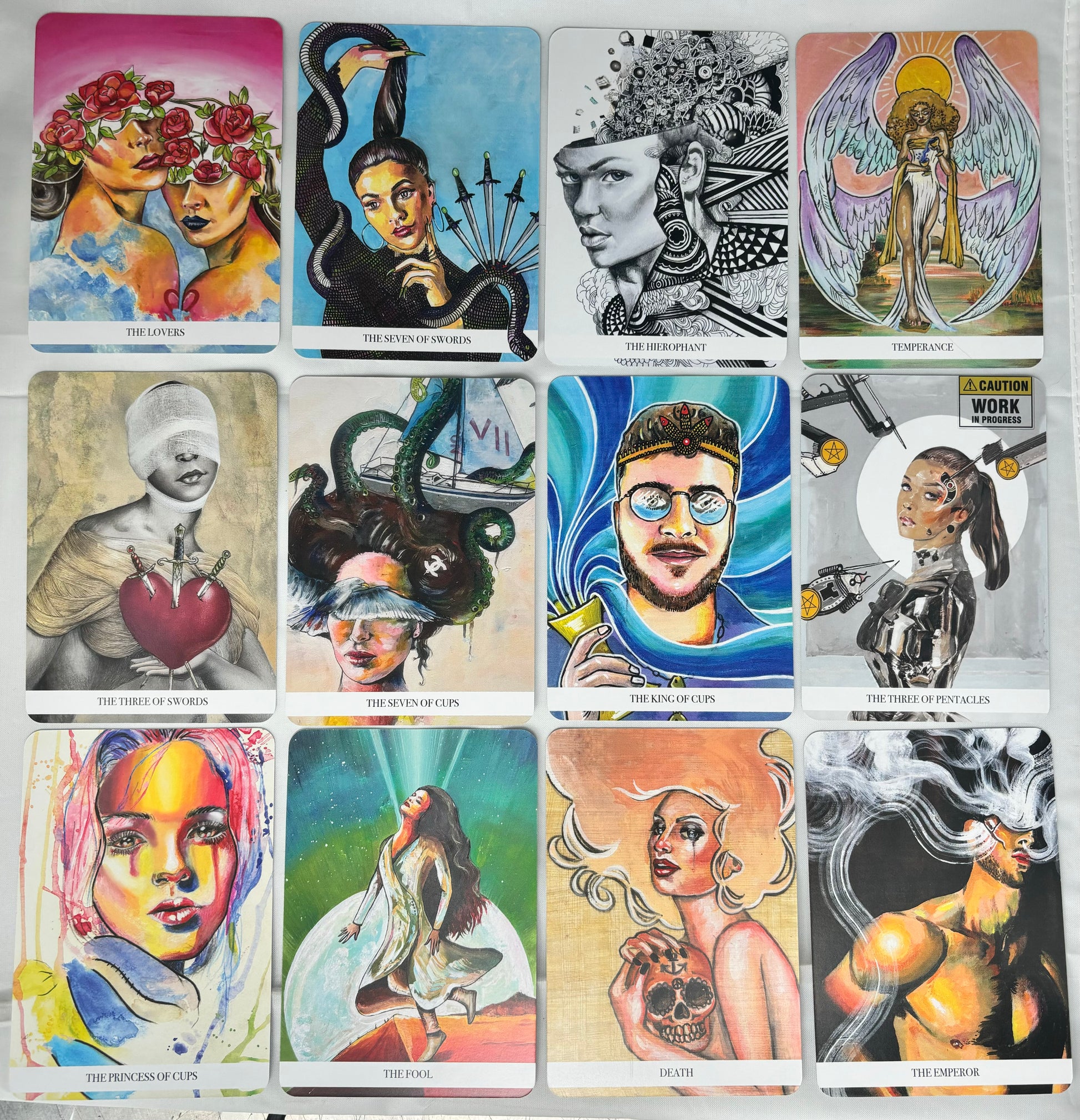 “The Artist’s Tarot: A Creative Journey Through the Cards” Unlock your inner muse with The Artist’s Tarot, a deck designed to channel the emotional depth, chaos, and clarity of the creative process. Each card reimagines traditional tarot through the eyes of the artist — from the spark of inspiration in The Fool to the transformative fire of Death as the artist’s burning canvas. Whether you’re a painter, writer, dancer, or dreamer, this deck invites you to explore your creative blocks, breakthroughs, and everything in between. Let each reading become a self-portrait of your artistic soul.